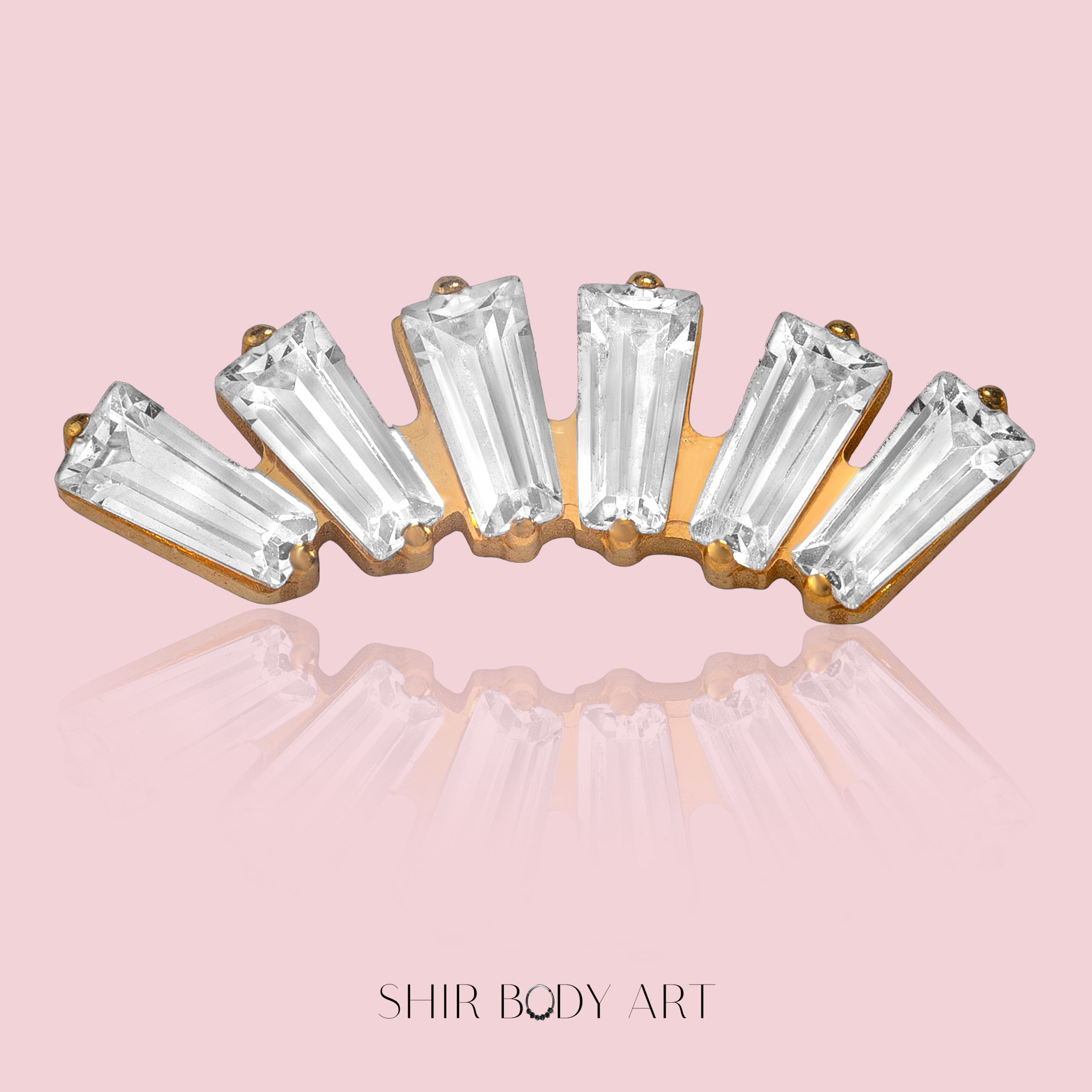 תכשיט בעיצוב של קשת קריסטלים מלכותית,כמו כתר עדין שמאיר את הנוכחות שלך.