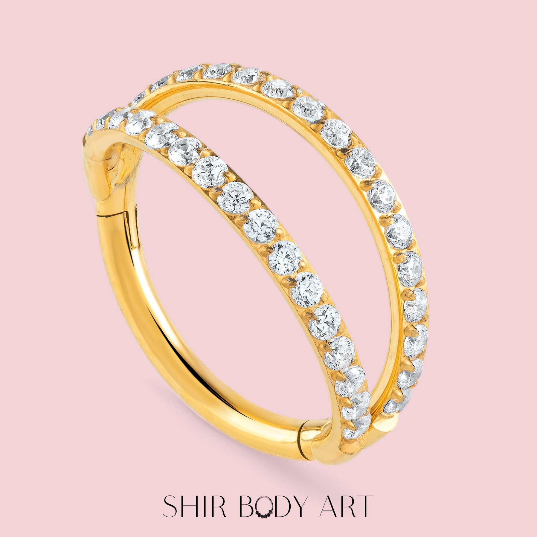 דגם עוצמתי! שני עולמות-עגיל אחד!עגיל חישוק כפול מלכותי שמעניק את המראה המושלם של שני עגילים בשילוב אחד אלגנטי וסופר נוצץ.
