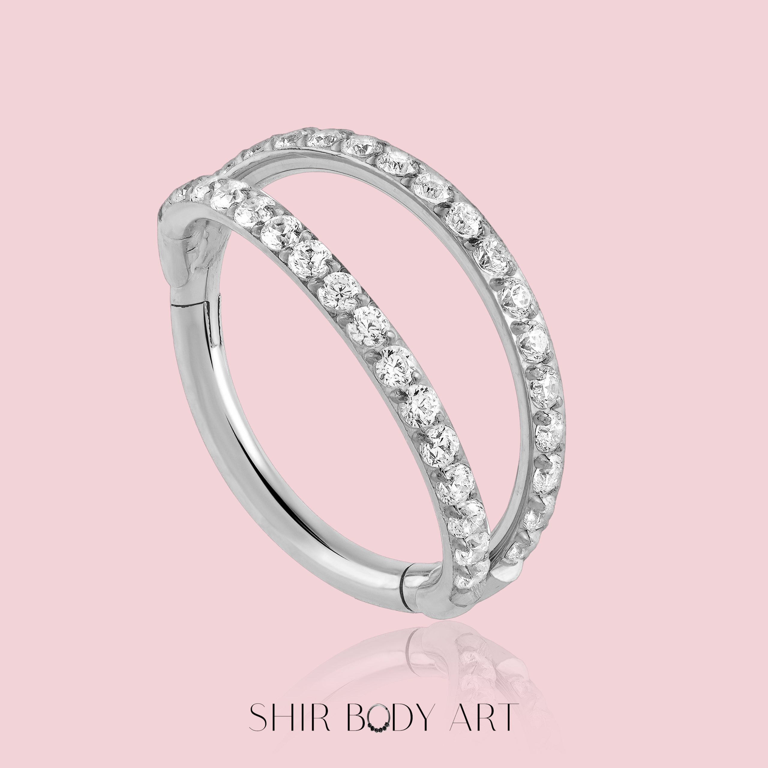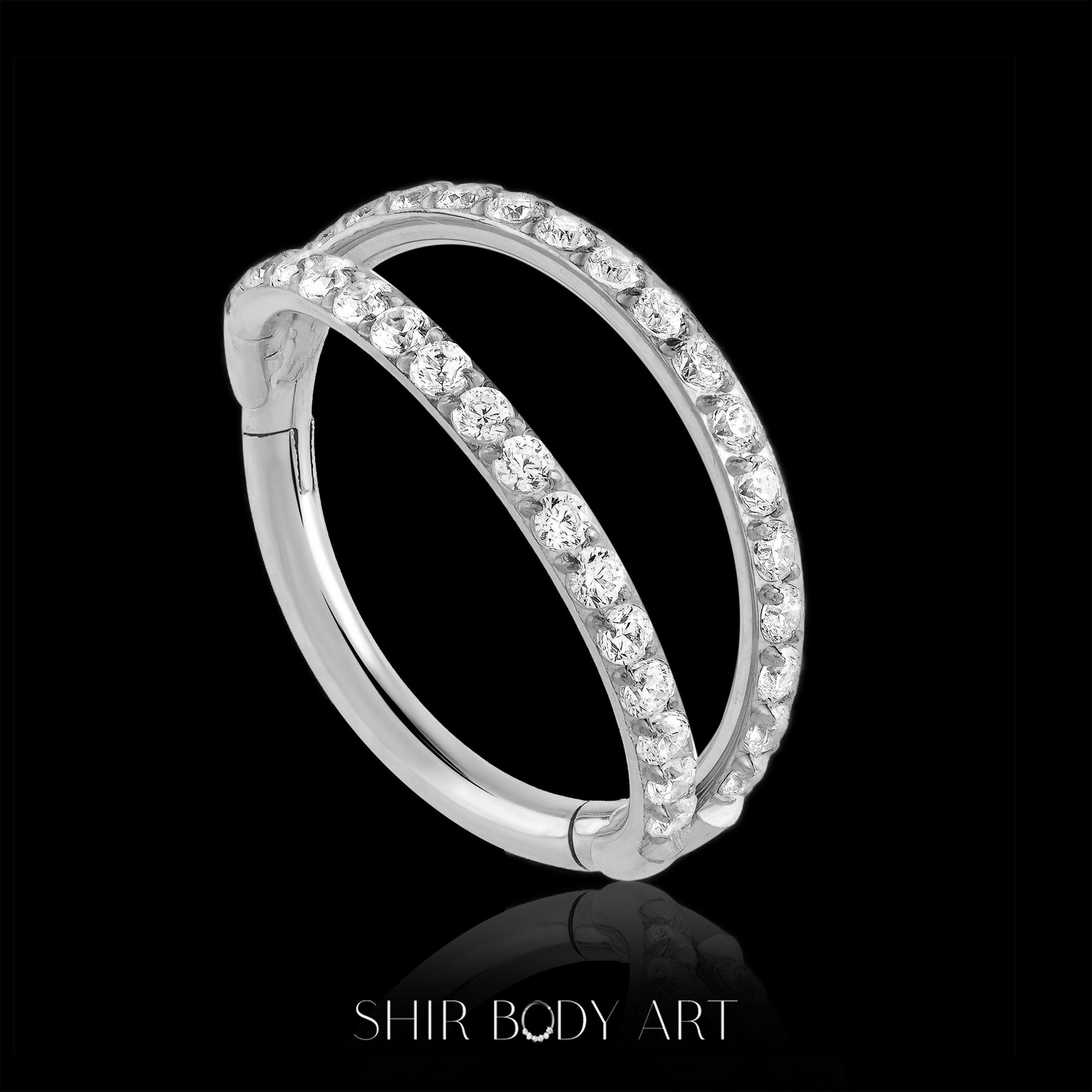 עגיל בעיצוב של שני חישוקים שמשתלבים בהרמוניה מושלמת- כמו שיר שמתנגן על העור.